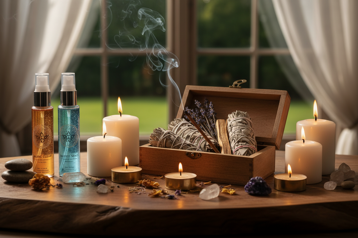 Mists, candles, pendulum boards, and tools to cleanse, protect, and elevate your space.